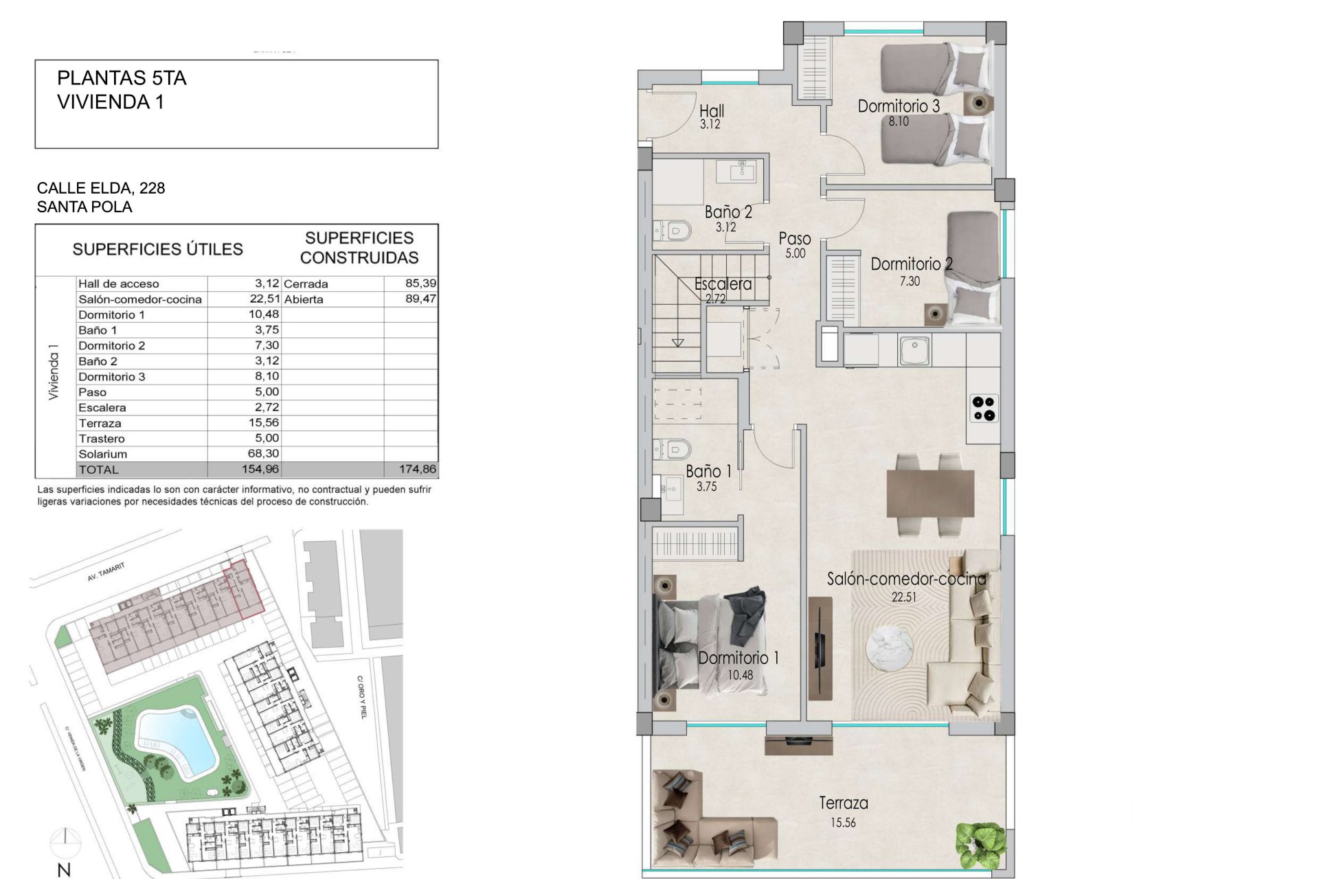 Nachází se v okouzlujícím městě Santa Pola, tato rezidence nabízí výběr z 80 nemovitostí, včetně bytů a penthousů, navržených pro ty, kteří hledají domov s výhledem na moře. Blízkost k moři, pouhý 1 km, umožňuje vychutnat si mořský vánek a jedinečné pobřežní scenérie. Navíc blízkost letiště, pouhých 15 km, usnadňuje přístup a mobilitu pro obyvatele a návštěvníky. Nemovitosti jsou vybaveny moderními prvky, jako jsou vestavěné skříně a keramické podlahy, které zajišťují pohodlí a styl v každém koutě.