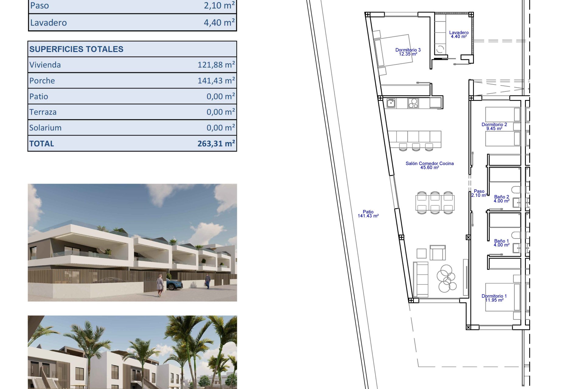 Exteriéry těchto nemovitostí jsou navrženy tak, aby maximalizovaly požitek ze středomořského klimatu. Každý byt má soukromou terasu, ideální pro relaxaci venku nebo pro stolování pod širým nebem. Přízemní byty nabízejí další výhodu soukromé zahrady, poskytující osobní zelený prostor pro pěstování rostlin nebo jen pro odpočinek. Penthousy naopak zahrnují solárium, ideální pro opalování v soukromí. Možnost garáže zajišťuje, že parkování není problém, což umožňuje obyvatelům užívat si pohodlí mít své vozidlo vždy po ruce.