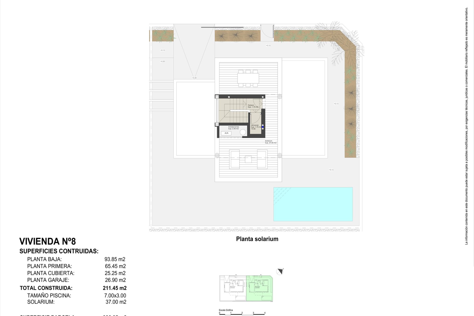 El diseño exterior de las villas incluye un jardín privado que ofrece un espacio perfecto para disfrutar del aire libre. La terraza es ideal para relajarse o para organizar reuniones al aire libre. Además, cada villa cuenta con un solárium, proporcionando un espacio adicional para disfrutar del sol y las vistas del entorno. La presencia de un garaje asegura comodidad y seguridad para el estacionamiento de vehículos.
