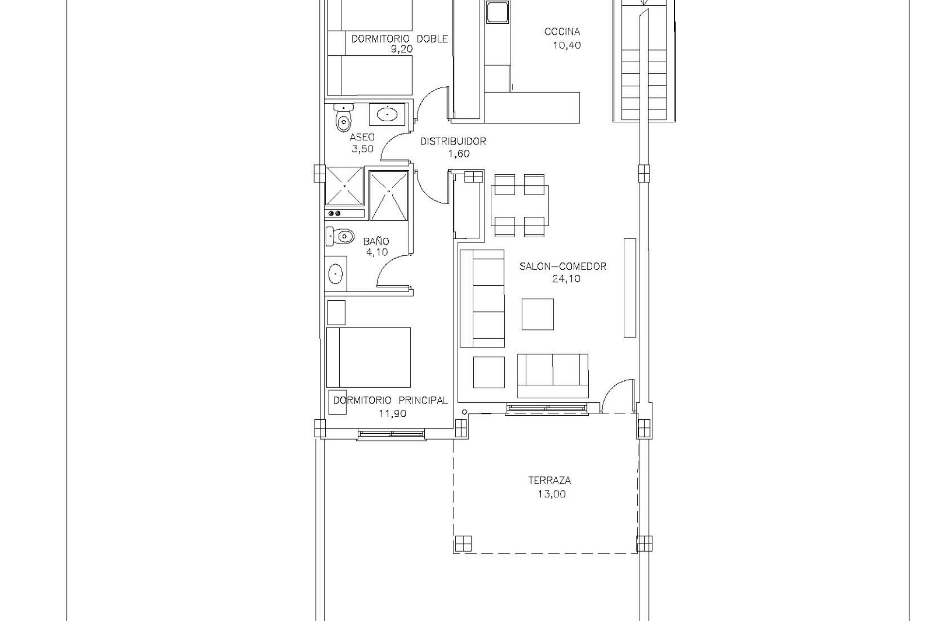 El interior de las viviendas está diseñado para ofrecer confort y modernidad. Los suelos de gres porcelánico aportan un toque de elegancia y son fáciles de mantener. Las viviendas están equipadas con armarios empotrados, proporcionando un amplio espacio de almacenamiento. La preinstalación de aire acondicionado asegura que el clima interior sea siempre agradable, mientras que el videoportero añade un nivel extra de seguridad y comodidad. La distribución de las viviendas, con dos dormitorios y dos baños, está pensada para ofrecer un espacio funcional y acogedor, adaptándose a las necesidades de sus residentes.