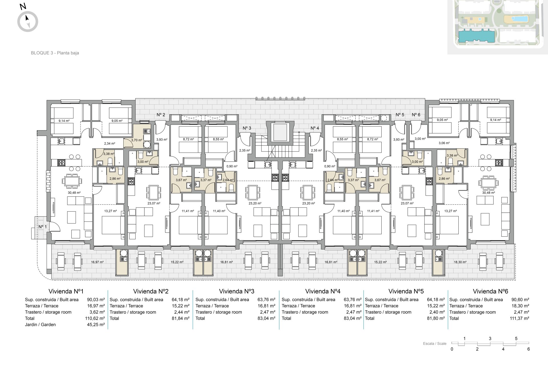 El interior de las viviendas está cuidadosamente diseñado para ofrecer un espacio acogedor y funcional. Las opciones de distribución incluyen viviendas de 2 y 3 dormitorios, todas con 2 baños, lo que proporciona flexibilidad para familias de diferentes tamaños. Los suelos de cerámica aportan un toque moderno y son fáciles de mantener. La inclusión de un jacuzzi privado en algunas propiedades añade un elemento de lujo y relajación. Además, la preinstalación de aire acondicionado asegura que las viviendas estén preparadas para mantener una temperatura agradable durante todo el año.