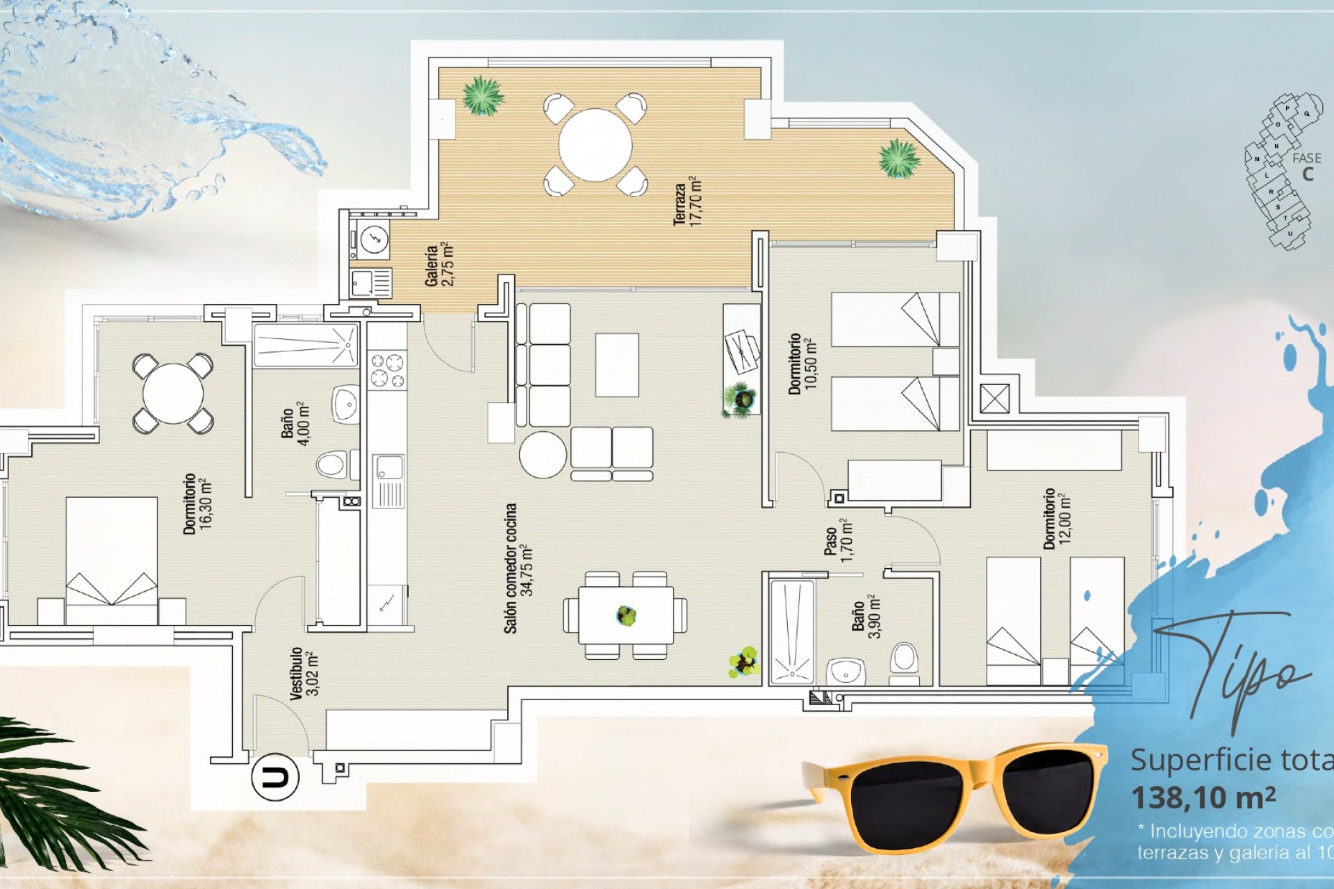 El interior de las viviendas está cuidadosamente diseñado para ofrecer el máximo confort y funcionalidad. Los apartamentos y áticos están disponibles en configuraciones de 1, 2 y 3 dormitorios, con 1 o 2 baños, adaptándose a las necesidades de cada residente. Los suelos de cerámica aportan un toque moderno y son fáciles de mantener. La instalación de aire acondicionado y la preinstalación adicional aseguran un ambiente agradable durante todo el año. Las persianas eléctricas y el videoportero añaden un nivel extra de comodidad y seguridad. Los armarios empotrados optimizan el espacio de almacenamiento, manteniendo el orden y la organización en el hogar.
