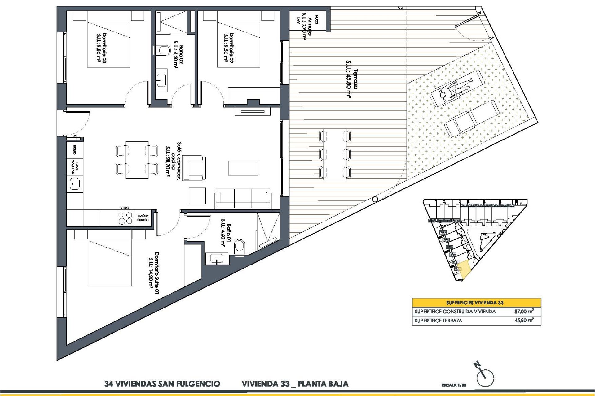 Ubicado en el encantador municipio de San Fulgencio, este conjunto residencial ofrece una selección de 12 bungalows, divididos en dos tipologías: bungalows con solarium y bungalows con jardín. Este entorno residencial se encuentra a tan solo 34 km del aeropuerto, lo que facilita el acceso para quienes viajan con frecuencia. La ubicación estratégica de San Fulgencio proporciona un ambiente tranquilo y acogedor, ideal para quienes buscan un hogar en una zona apacible pero bien conectada.