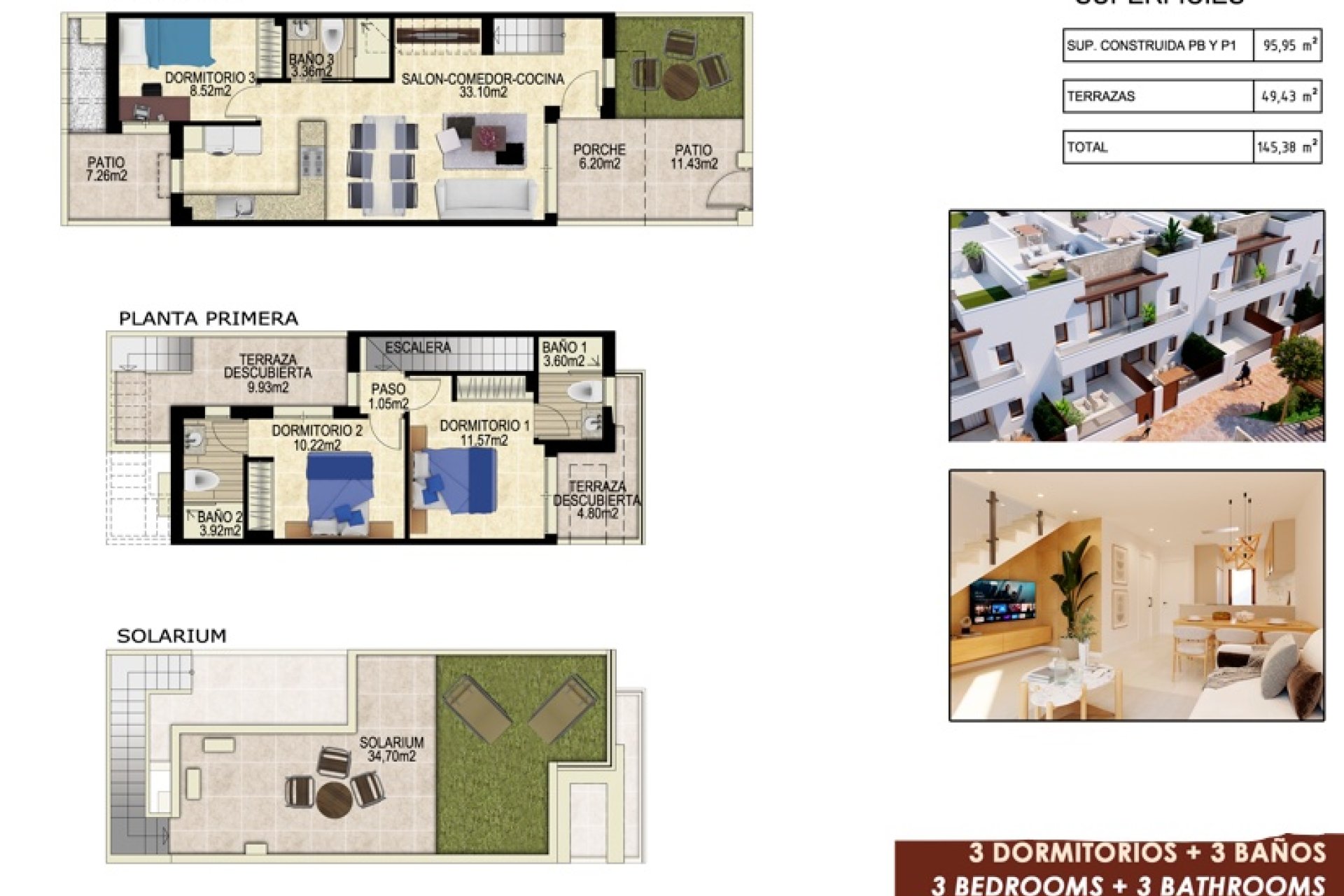Ubicado en la hermosa zona de Orihuela Costa, este conjunto residencial ofrece 13 adosados diseñados para quienes buscan confort y funcionalidad. Cada vivienda está pensada para maximizar el espacio y la comodidad, con una distribución que incluye tres dormitorios y tres baños. La ubicación es ideal para los amantes del golf, ya que se encuentra a solo 1 km de distancia de un campo de golf, lo que permite disfrutar de este deporte en un entorno privilegiado.
