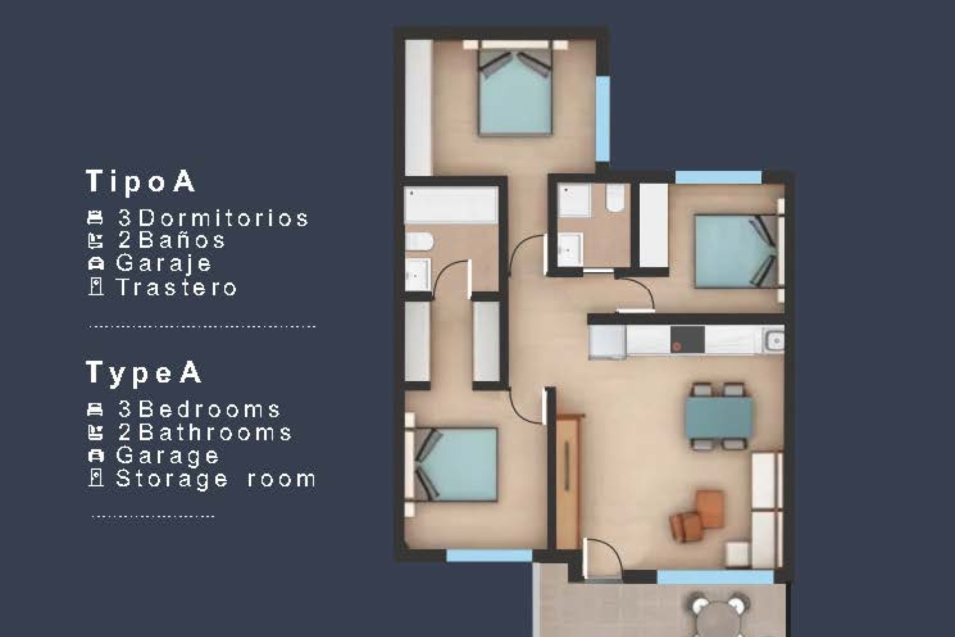 El interior de estas viviendas está diseñado con un enfoque en la calidad y el confort. Los suelos de gres porcelánico aportan un toque moderno y elegante a cada espacio. La distribución incluye 2 baños, asegurando comodidad para todos los miembros de la familia. Las viviendas están equipadas con armarios empotrados, optimizando el espacio de almacenamiento. La preinstalación de aire acondicionado garantiza un ambiente agradable durante todo el año. Además, el videoportero proporciona un extra de seguridad y comodidad. La inclusión de un garaje privado añade un nivel adicional de conveniencia para los residentes.