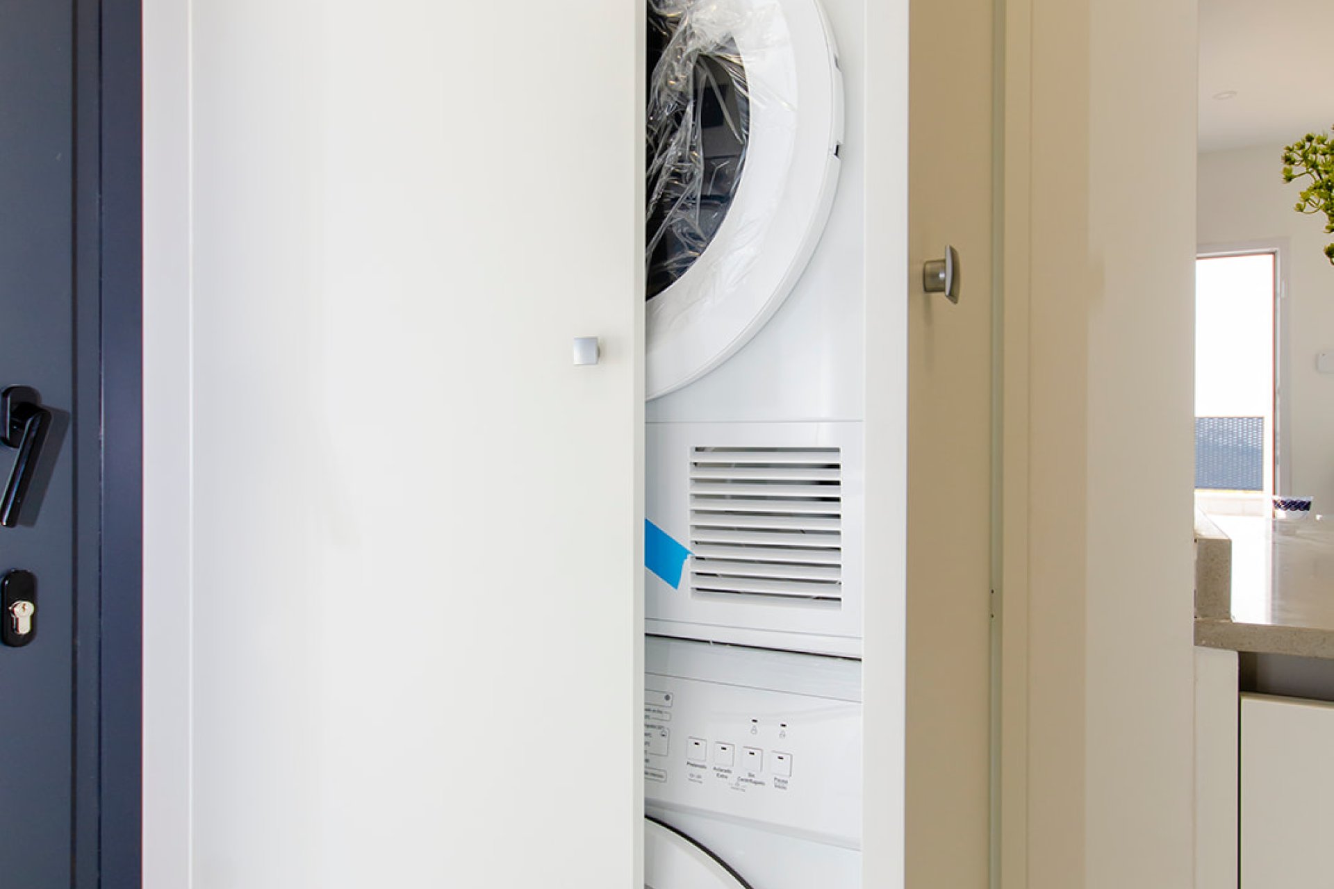 El interior de estas viviendas en Orihuela está diseñado con un enfoque en la comodidad y la funcionalidad. Los suelos de cerámica aportan un toque moderno y son fáciles de mantener. Las viviendas vienen completamente amuebladas, lo que facilita la mudanza y permite disfrutar del nuevo hogar desde el primer día. La cocina está equipada con electrodomésticos de alta calidad, y los armarios empotrados en los dormitorios ofrecen un amplio espacio de almacenamiento. El sistema de aire acondicionado, junto con la preinstalación adicional, asegura un ambiente agradable durante todo el año. Las persianas eléctricas y el videoportero añaden un nivel extra de confort y seguridad.