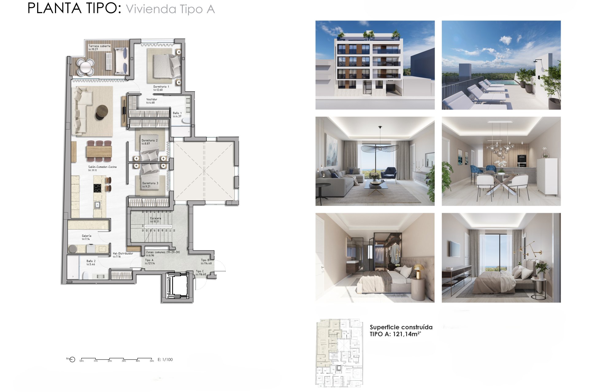Los exteriores de estas viviendas están pensados para maximizar el disfrute del clima mediterráneo. Todas las propiedades cuentan con terrazas, perfectas para relajarse mientras se contempla el mar. Además, el residencial dispone de un solárium comunitario, ideal para tomar el sol y disfrutar de las vistas panorámicas. La cercanía al mar, a solo 700 metros, permite disfrutar de la playa en cualquier momento.
