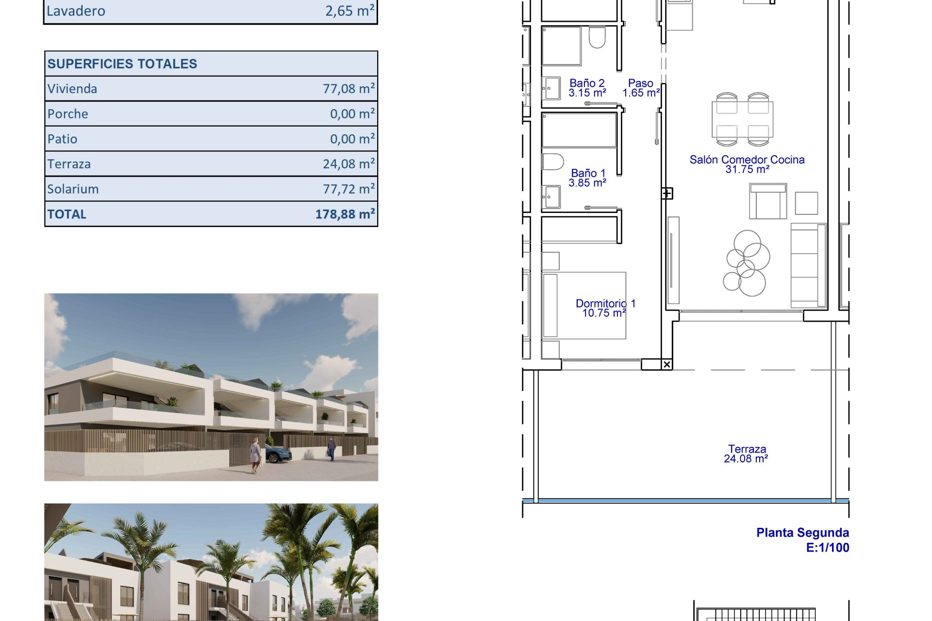 Los exteriores de estas propiedades están diseñados para maximizar el disfrute del clima mediterráneo. Cada vivienda cuenta con una terraza privada, perfecta para relajarse al aire libre o disfrutar de comidas al fresco. Las plantas bajas ofrecen la ventaja adicional de un jardín privado, proporcionando un espacio verde personal para cultivar plantas o simplemente descansar. Los áticos, por su parte, incluyen un solárium, ideal para tomar el sol en privacidad. La opción de un garaje asegura que el estacionamiento no sea un problema, permitiendo a los residentes disfrutar de la comodidad de tener su vehículo siempre a mano.