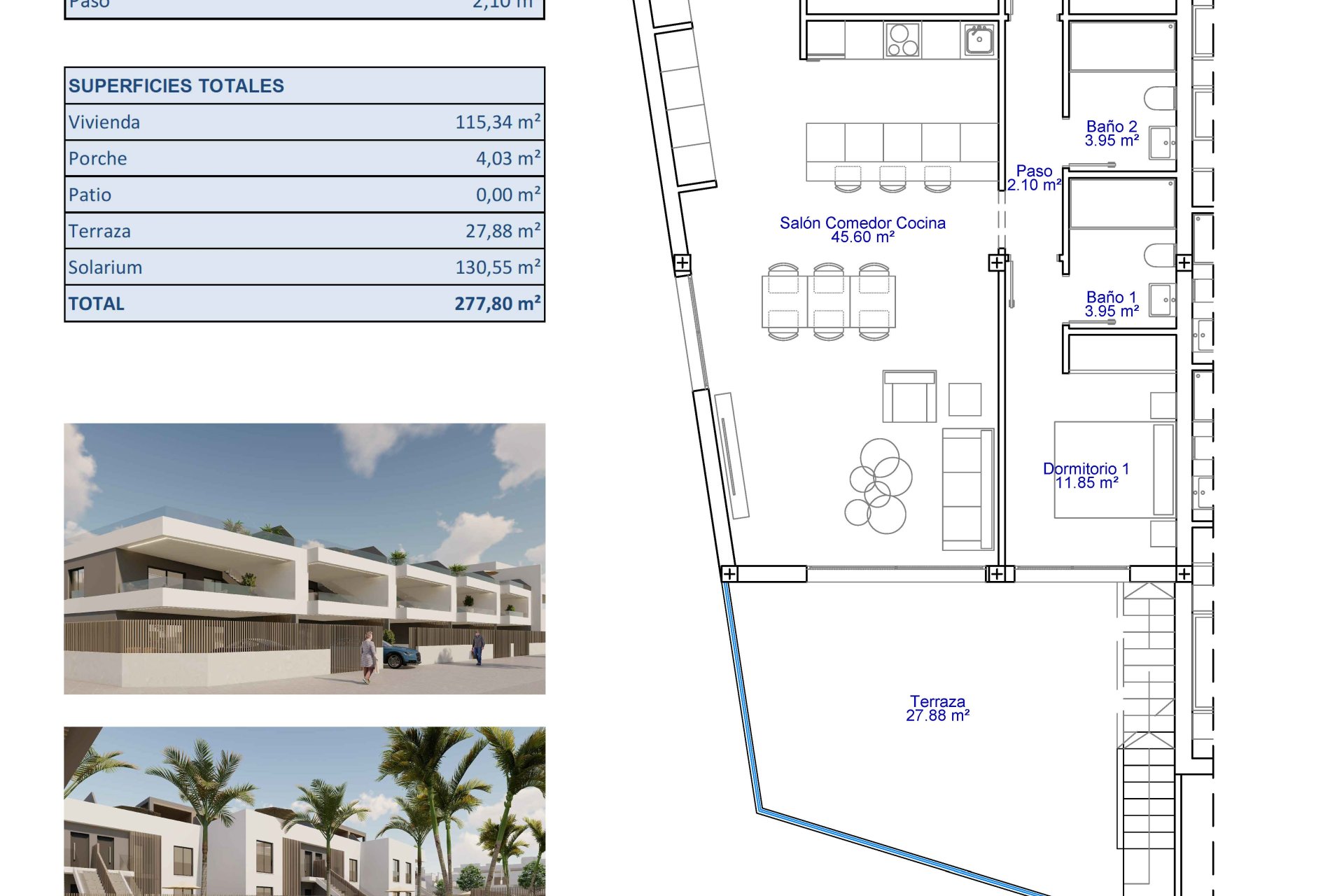 Ubicado en el encantador municipio de Pilar de la Horadada, este conjunto residencial ofrece una selección exclusiva de 10 bungalows. Diseñados para aquellos que buscan un estilo de vida cómodo y moderno, los bungalows están disponibles en configuraciones de dos y tres dormitorios, todos con dos baños. La ubicación es ideal para quienes desean disfrutar de la tranquilidad sin renunciar a la proximidad al mar, que se encuentra a solo 3 km de distancia. Además, el aeropuerto más cercano está a 45 km, facilitando el acceso para aquellos que viajan con frecuencia.