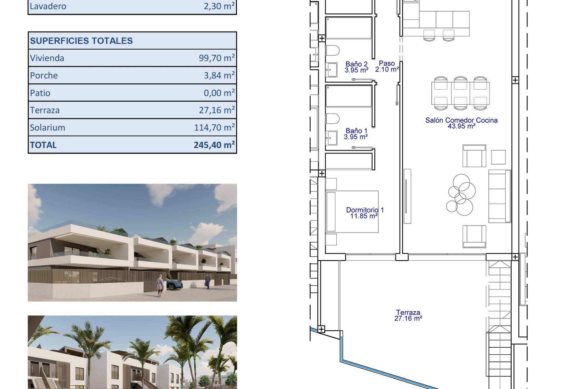 Ubicado en el encantador municipio de Pilar de la Horadada, este conjunto residencial ofrece una selección exclusiva de 10 bungalows. Diseñados para aquellos que buscan un estilo de vida cómodo y moderno, los bungalows están disponibles en configuraciones de dos y tres dormitorios, todos con dos baños. La ubicación es ideal para quienes desean disfrutar de la tranquilidad sin renunciar a la proximidad al mar, que se encuentra a solo 3 km de distancia. Además, el aeropuerto más cercano está a 45 km, facilitando el acceso para aquellos que viajan con frecuencia.
