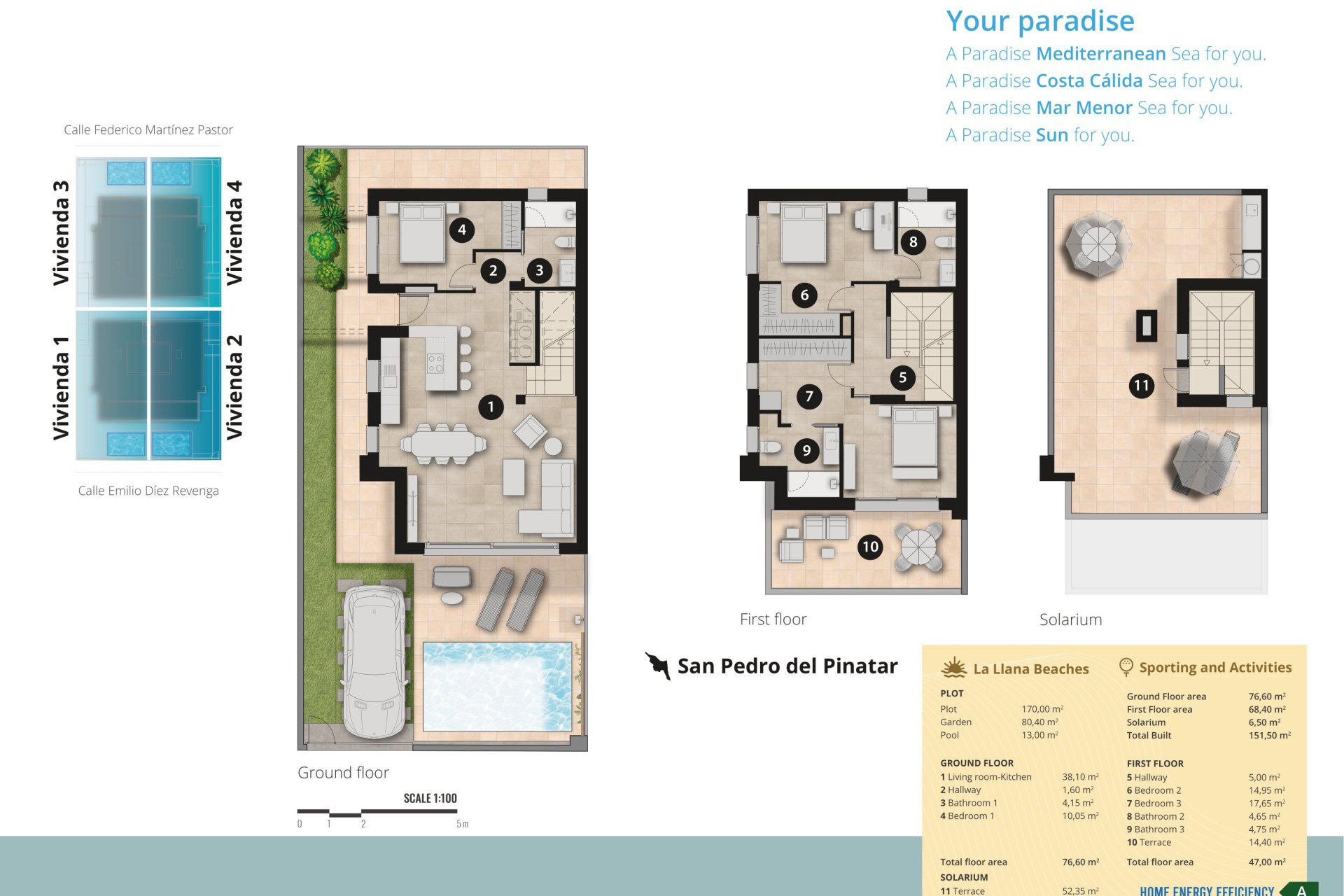 Located in the charming town of San Pedro del Pinatar, these detached homes offer an ideal setting for those seeking proximity to the sea, just 1 km away. With a total of four properties available, each is designed to provide maximum comfort and functionality. The typology of the homes is "Detached", ensuring privacy and exclusivity in a privileged environment.