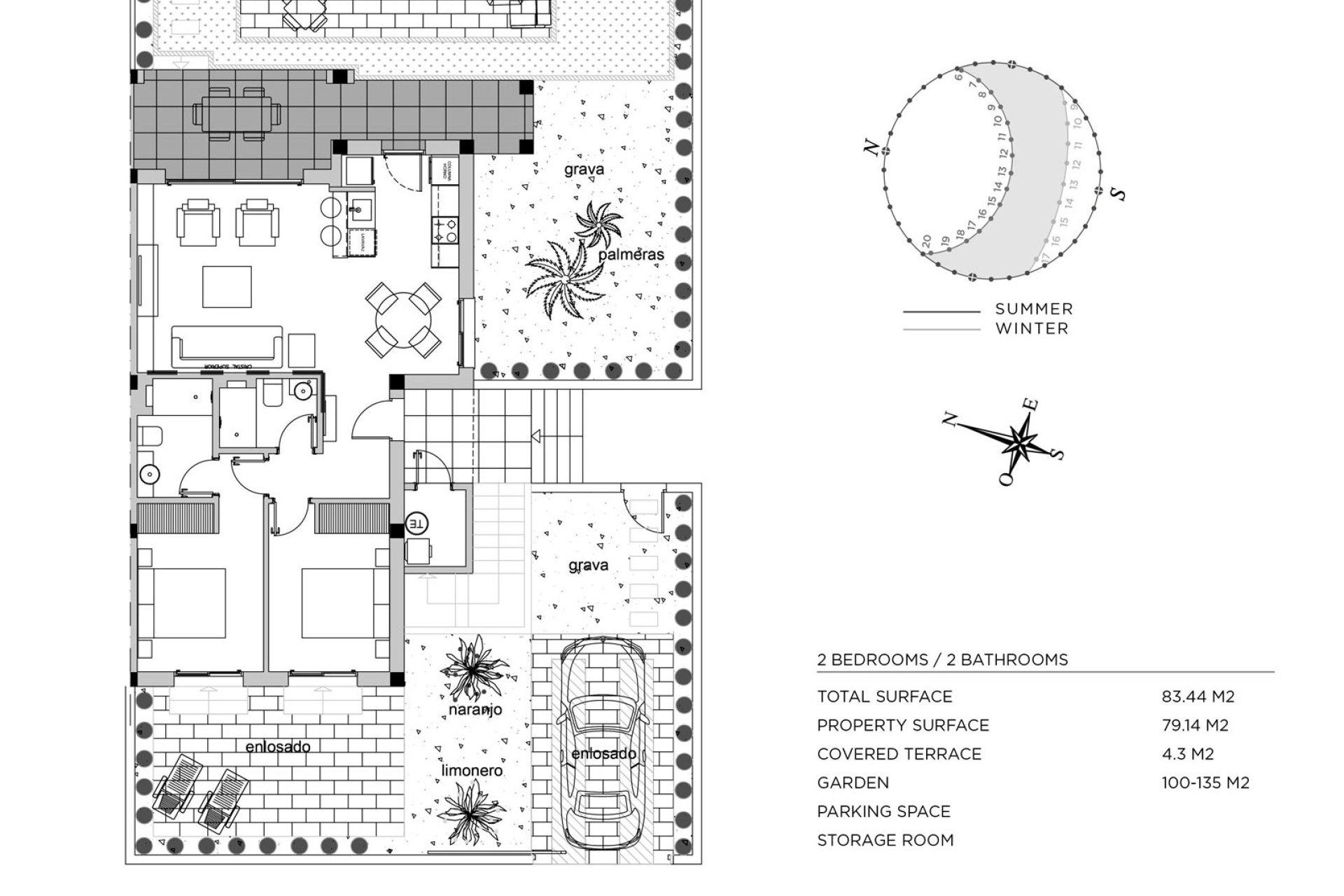 The interior of the properties in this residential complex in Rojales is designed to offer maximum comfort and functionality. With options of 2 or 3 bedrooms and 2 or 3 bathrooms, each home is designed to adapt to the needs of its residents. The interior spaces are spacious and bright, with a design that maximizes natural light entry and creates a welcoming atmosphere. The layout includes a private garage, ensuring convenience and security for residents' vehicles. Additionally, the presence of a solarium in each property offers additional space for relaxation or entertainment, allowing enjoyment of the Mediterranean climate year-round. High-quality finishes and carefully selected details reflect a sophisticated and modern lifestyle, making each home an ideal place to live.