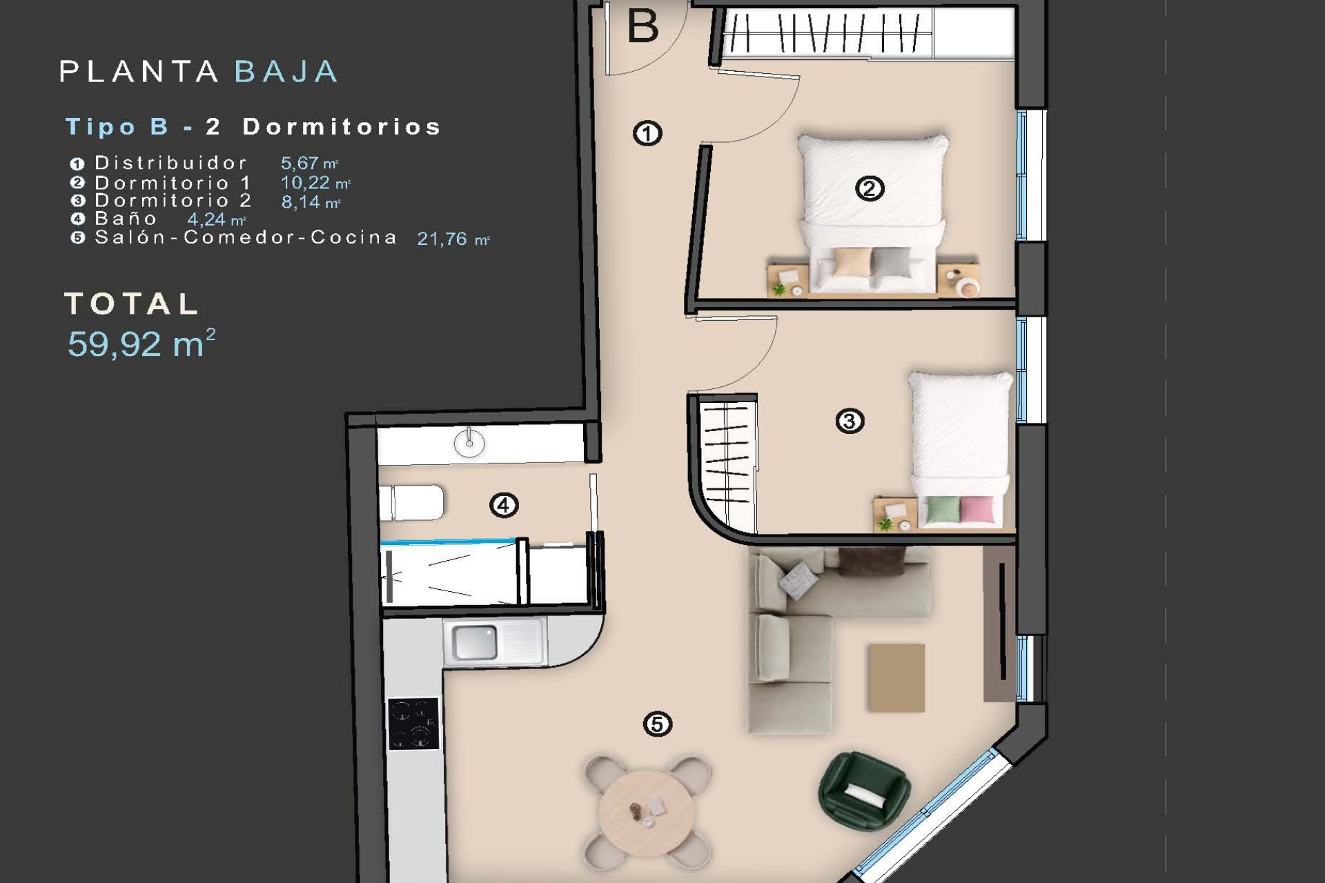 Located in the beautiful town of Torrevieja, this residential complex offers a selection of apartments, ground floors, and penthouses. With a total of 10 properties, each has been designed to maximize comfort and functionality. The proximity to the sea, just 400 meters away, allows for sea views from many of the homes, creating an atmosphere of tranquility and natural beauty. Additionally, the strategic location 45 kilometers from the airport facilitates access and mobility for residents and visitors.
